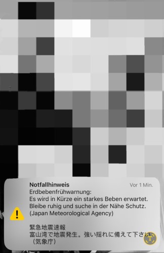6.33 Uhr, Montagmorgen in Nihonbashi, Tokio: Lauter, schriller, bisher nie gehörter Alarm dröhnt aus dem Smartphone. Das Display sagt „Erdbebenfrühwarnung: Es wird in Kürze ein starkes Beben erwartet. Suchen Sie Schutz.“